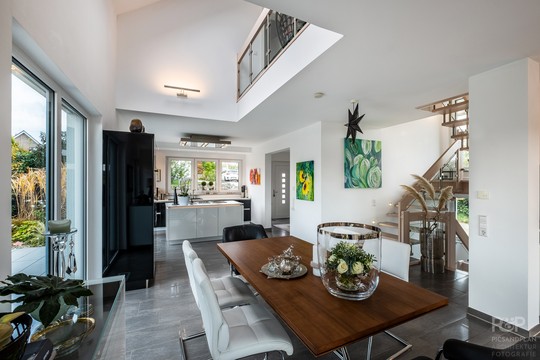 Stilvoll und mondän präsentiert sich dieses neuwertige, freistehende Einfamilienhaus, welches im Jahr 2015 auf einem ca. 384 m² großen Grundstück errichtet wurde. Bei der Errichtung dieser Immobilie wurde auf eine hohe Energieeffizienz und Nachhaltigkeit geachtet und ist somit ideal auf die heutigen Ansprüche angepasst. Einheitliche Materialien und ein im Einklang stehender Stil macht diese Immobilie mondän und geradlinig.